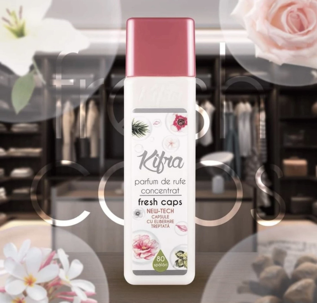 A Fresh Caps egy New Tech mosodai illat, amely a természet frissességét fejezi ki, tiszta aromákkal, természetes és pihentető jegyekkel.Intenzív és hosszan tartó illata van, és a parfüm megalkotásakor alkalmazott új technológiának köszönhetően fokozatos felszabadulási tulajdonságokkal rendelkezik. A frissesség kapszulák érintéssel aktiválódnak, ami azt jelenti, hogy ruhái hosszú ideig frissek lesznek a szó valódi értelmében. A Fresh Caps mosodai parfüm legnagyobb előnye, hogy hatása akár 6 hónapig is kitart, ha a ruhákat a szekrényben tárolják. Szezonról szezonra frissen tartja az anyagát.
