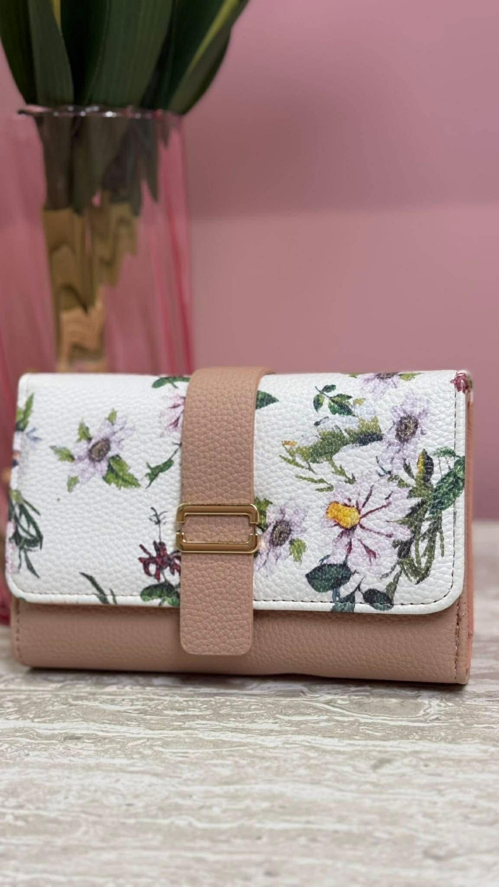 Tavaszi mintákban pompázó műbőr puha pénztárca.